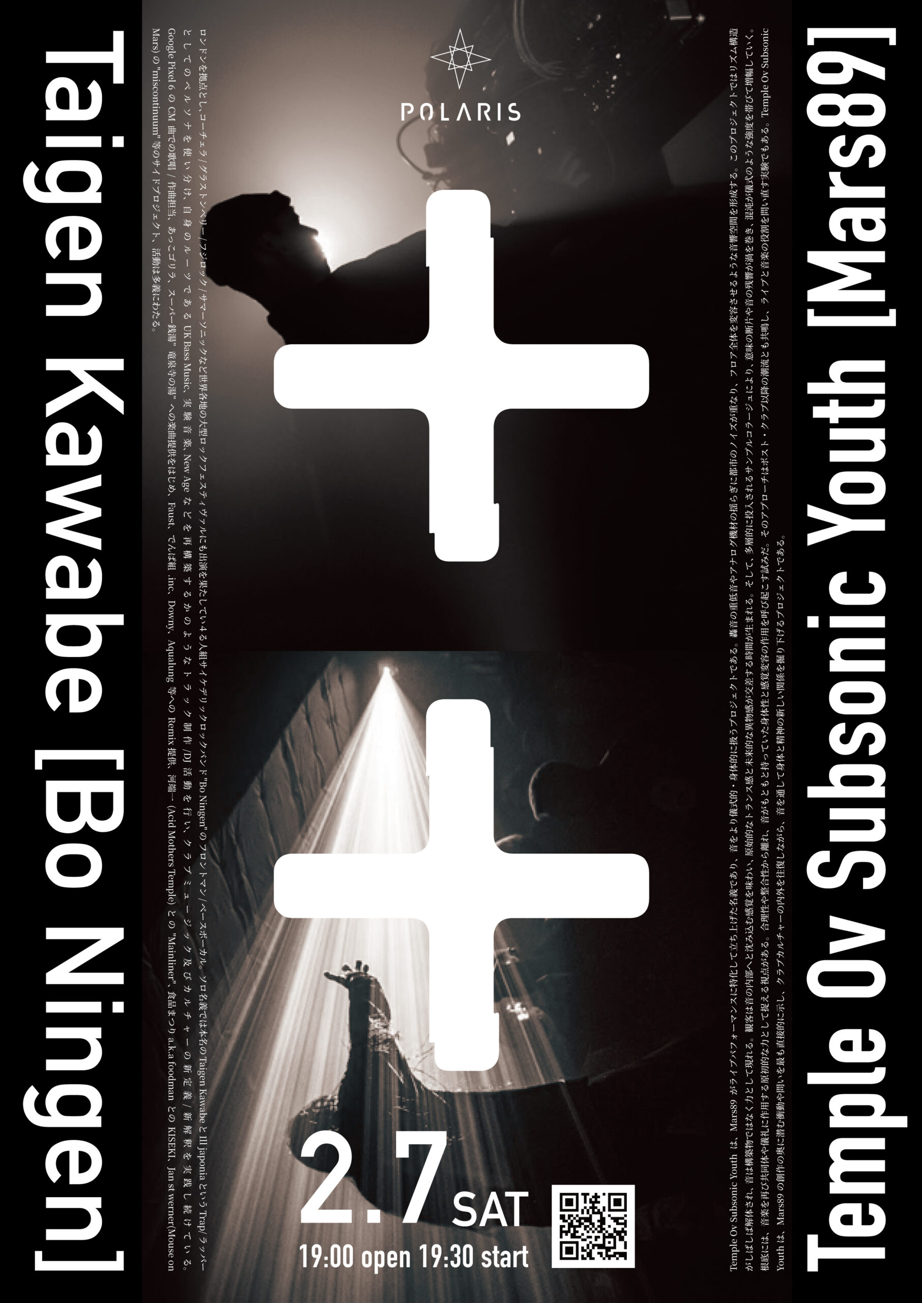 Temple Ov Subsonic Youthは、Mars89の創作の奥に潜む衝動や問いを最も直接的に示し、クラブカルチャーの内外を往復しながら、音を通して身体と精神の新しい関係を掘り下げるプロジェクトである。