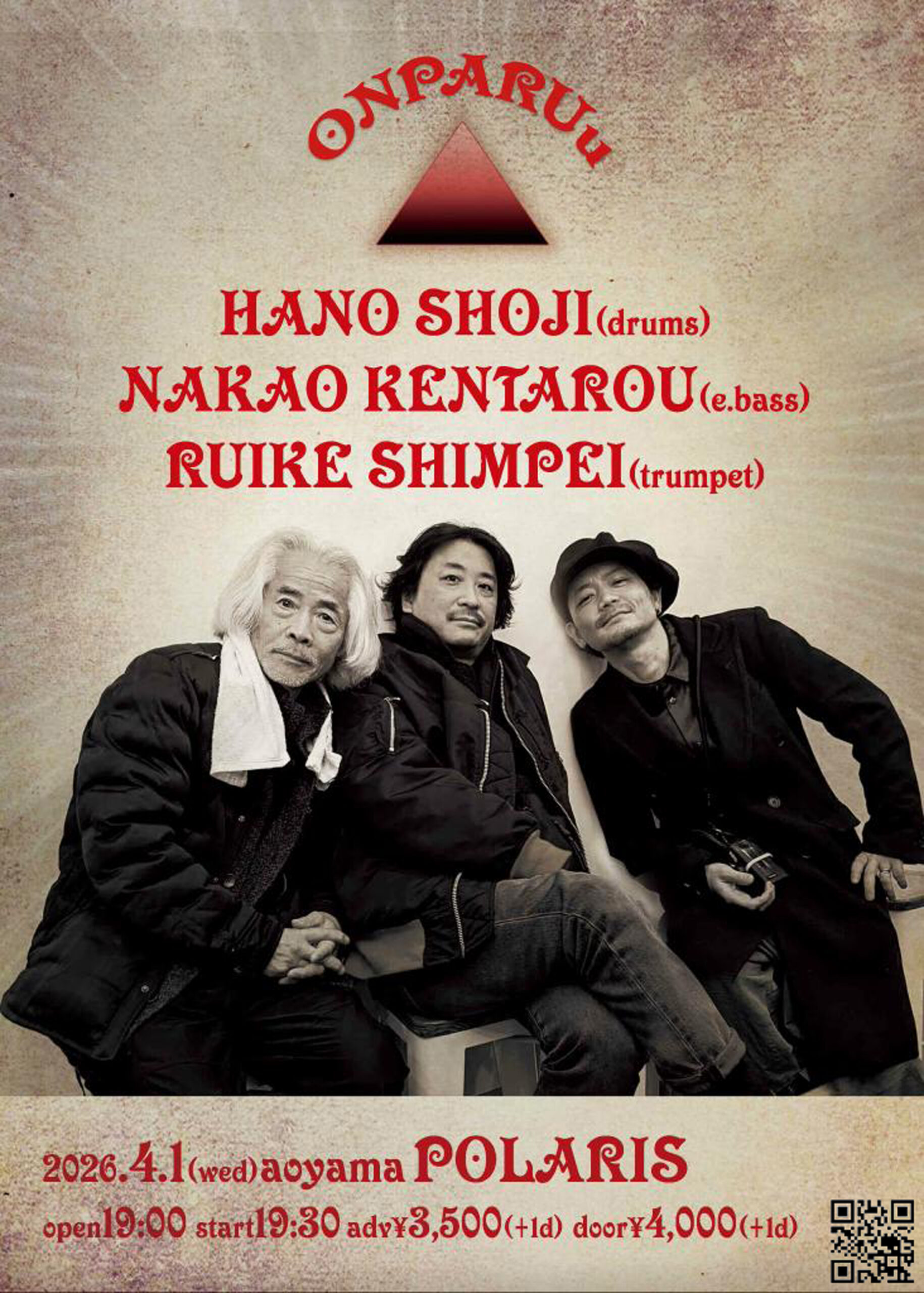 04/14 TUE DOT MEETING 07 OPEN/START 19:00/19:30 ACT : シュガー吉永(Buffalo Daughter)guitar、中尾憲太郎(ex.NUMBER GIRL)bass、松下敦 (Buffalo Daughter,ZAZEN BOYS) drums