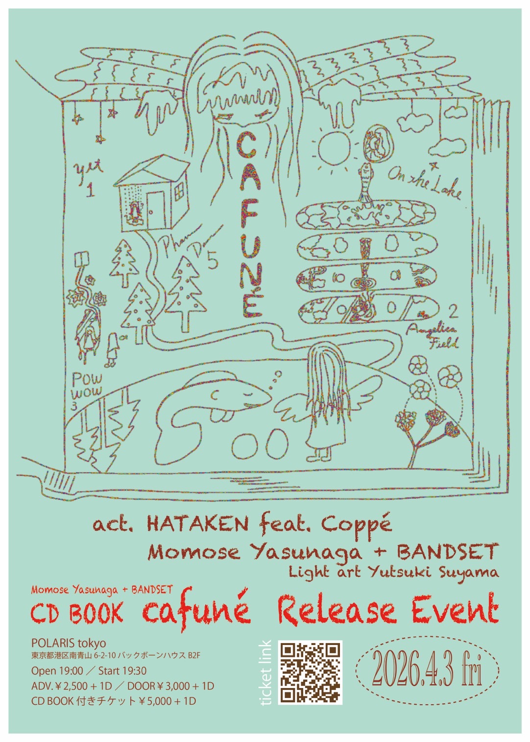 04/03 FRI Momose Yasunaga + BAND SET 「cafuné」Release Event OPEN/START 19:00/19:30 ACT : HATAKEN feat. Coppé / Momose Yasunaga + BAND SET Light art:Yutsuki Suyama