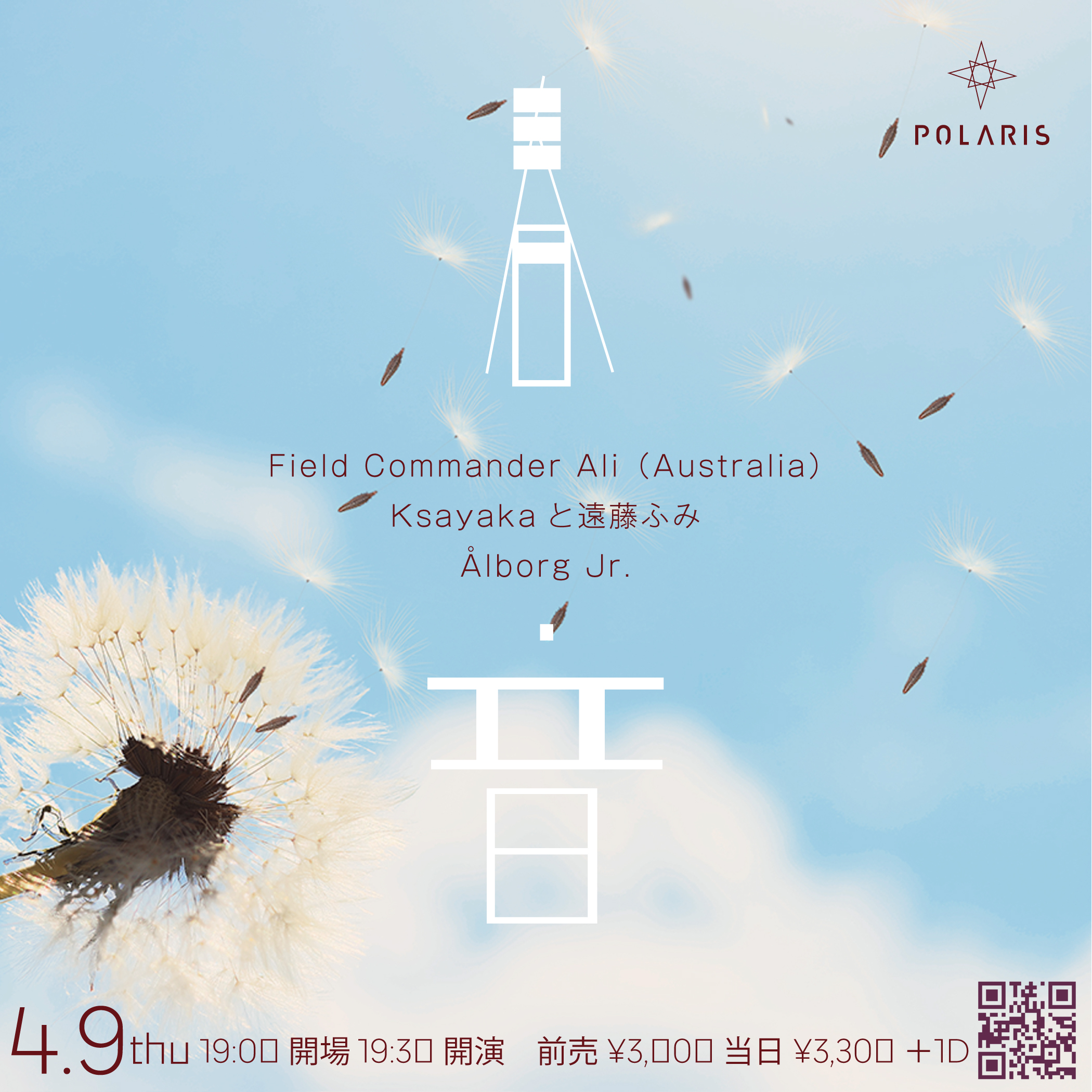 04/09 THU 春 音 OPEN/START 19:00/19:30 ACT : Field Commander Ali(Australia) / Ksayakaと遠藤ふみ / Ålborg Jr.